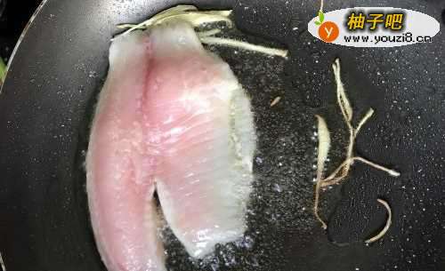 2平底锅锅里烧热,放入油,姜丝,盐,把鲷鱼片放进锅里煎,煎到两面微微金黄即可。光火上盘,锅里剩下的油留着等下煮酱。