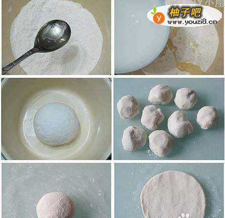 先在面粉里加入一勺食用油;加入开水搅拌均匀后和成光滑的面团;.把面团分成30克左右的小剂子;