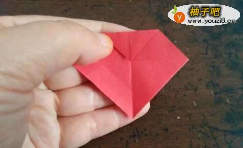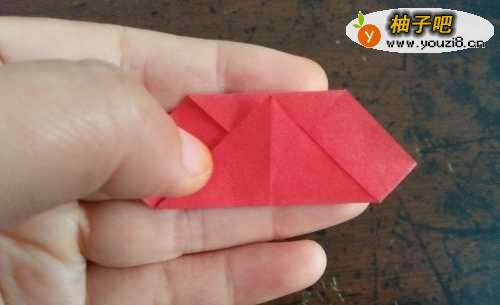 4再把右侧的角向内折,接着再把左侧的角向内折,折好后就是图二的样子。