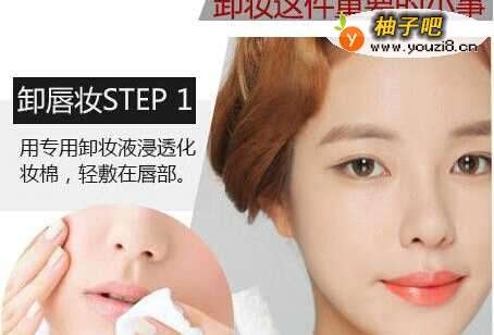 10Step 1:用专用卸妆液将化妆棉浸透,轻敷在唇部。