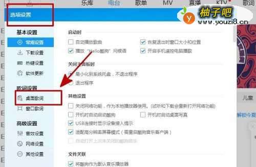 4选项设置框这时就会呈现在眼前,点击选择桌面歌词;