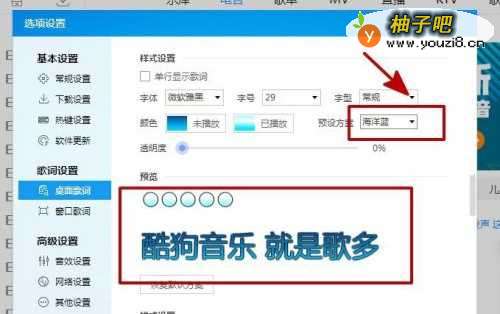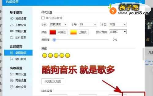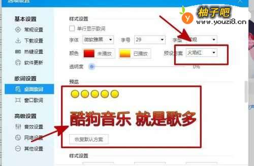 5这时在桌面歌词右侧的样式设置中点击预设方案;