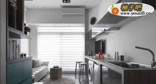 9想像窝在沙发上看电视,或是在吧台前享用一份佳肴,甚至随手洗好了污衣,21平方米小空间的生活也能这样简单。