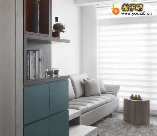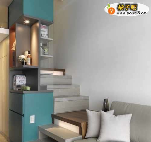 5运以一份精彩调色,地中海蓝转换入多面向柜体,具体带动3段式梯阶律动,在没有阳光的日子里依旧抢眼迷人。