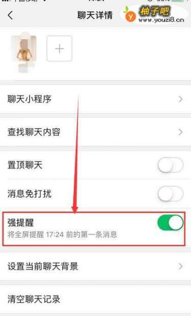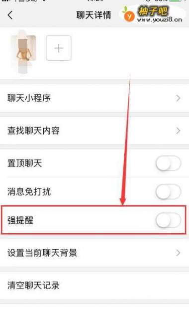 4打开之后进入到好友聊天详情页面,在页面中可以看到有个 强提醒,如下图