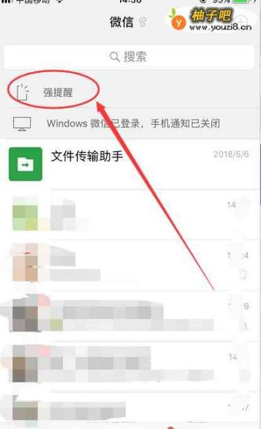 7然后在微信消息首页最上方就可以看到有个强提醒标示,如下图