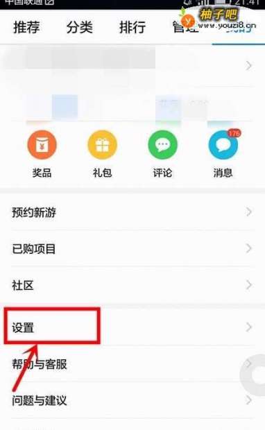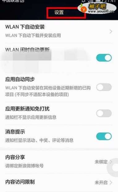 5此时,手机页面为应用市场的“设置”页面,在该页面中有诸多设置项;