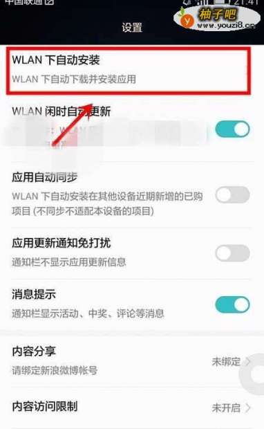 6我们找到“WLAN下自动安装”选项并选择该选项;