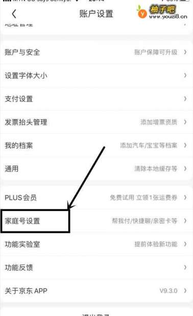 3在账户设置界面,点击【家庭号设置】;