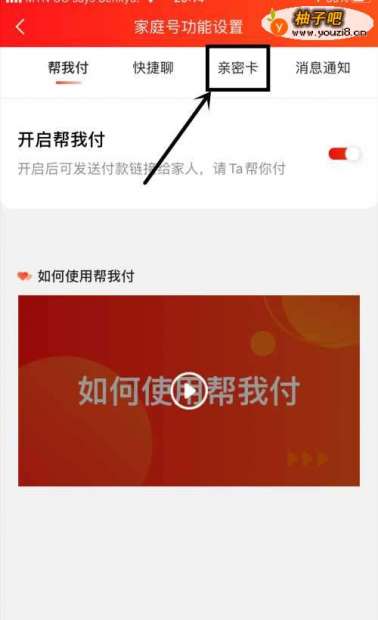 4在家庭号功能设置界面,点击选择【亲密卡】;