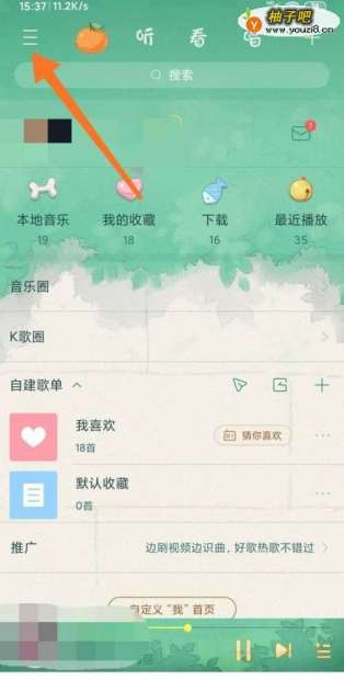 打开酷狗摇一摇播放器点击左上角三条横线,如图所示