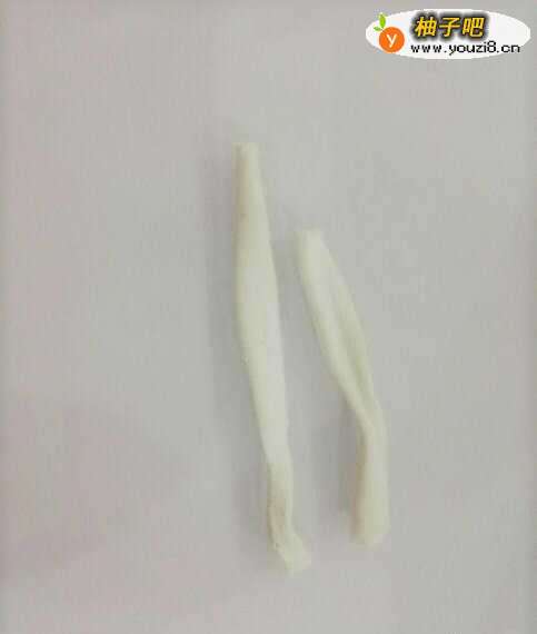 7剪两根稍微带点弹性的布条,我是用旧衣服剪的~两条布条长度稍微错一点,剪成一长一短