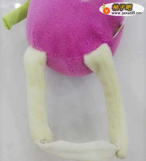 8把短的那根布条两端分别缝在兔兔两只脚的末端!把兔兔的两只脚连接起来!