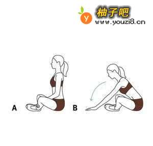 A.弯曲膝盖,使脚掌合拢,让膝盖跌落至地面。吸气时握住小腿,向上伸展胸部