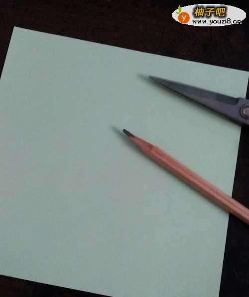我们先准备好工具,一张正方形纸,一把剪刀,一支笔备用。