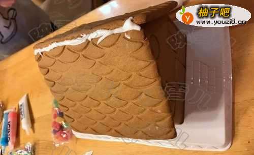 2用白色的糖霜当“胶水”,先装房子组装粘贴起来。