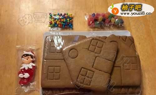 材料:姜饼、装饰彩糖、糖霜。