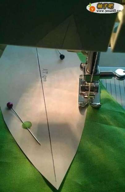 22.用缝纫机沿着纸片的边缘车缝一圈。