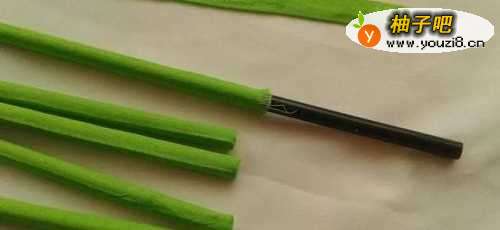 55.取吸管放入花茎中,在吸管底部剪出一个小口。