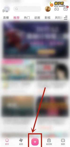 手机哔哩哔哩软件,点击下方添加发布项目。