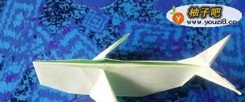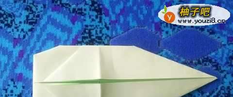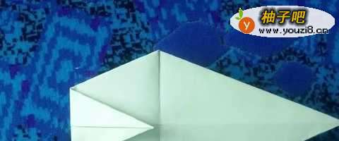 10沿虚线将尾巴向两侧展开折,再画上眼睛,鲸鱼就折好了。如图