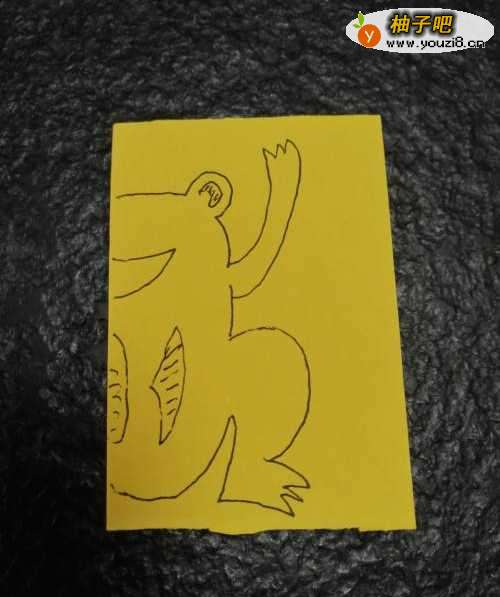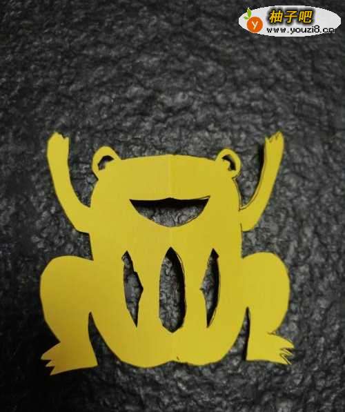 7第七步,最后用剪刀把画好的小青蛙剪裁出来,注意细节的剪裁。可爱的小青蛙就剪裁完成了。