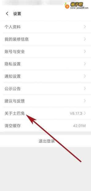 4进入到设置页面后,我们点击如图位置的“关于土巴兔”选项