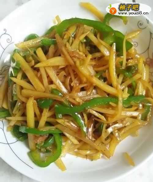 9将土豆炒熟,青椒也熟了,就可以出锅了。
