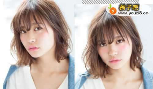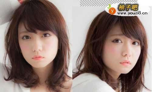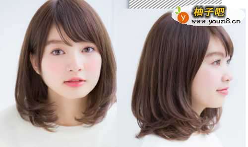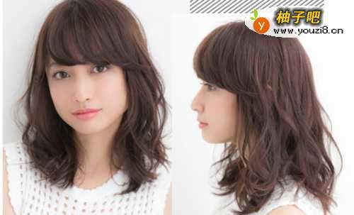 6斜刘海中长发与上一款相比,卷曲相对少了,看起来更清新甜美。再搭配深棕色染发让皮肤更白皙,让妹子看起来更好看。