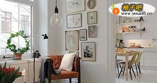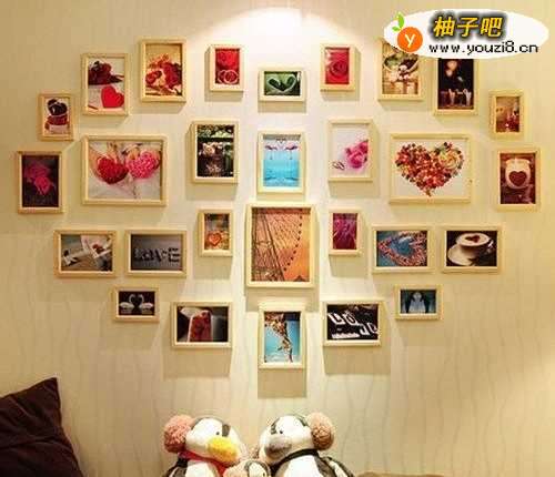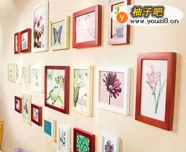 22、墙面的颜色:一般白色的墙面,相框的组合颜色不要超过三种,常以黑色,白色,胡桃色为主,如果是儿童房的话,可以做成彩色的。同时,对与有射灯墙面建议选用深色的相框,如黑色,红木色,褐色,胡桃色。这样设计出来的照片墙的效果还是比较好看的。