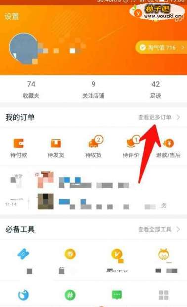 打开手机,登陆你的账号,点击图示位置的“查看更多订单”。