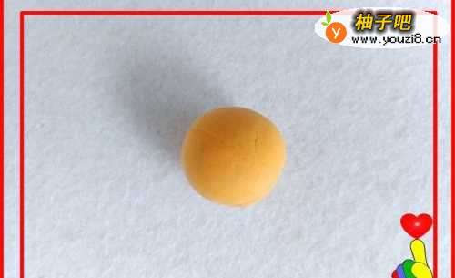 2取桔色彩泥适量,滚搓成圆球。