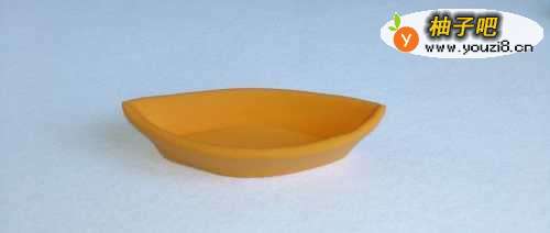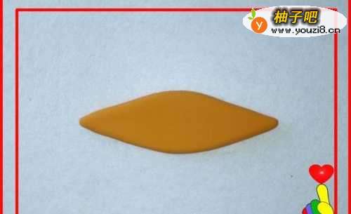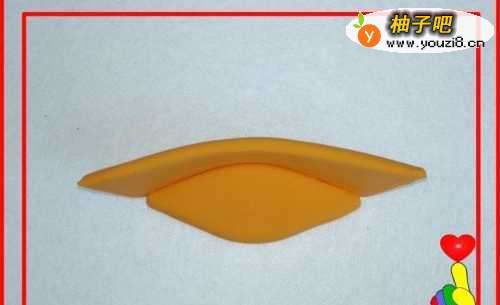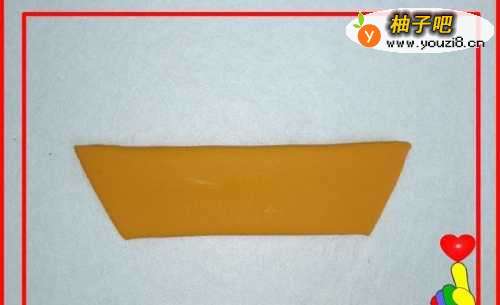 9再取桔色彩泥适量,制作另一面“梯形”,与船底粘合。