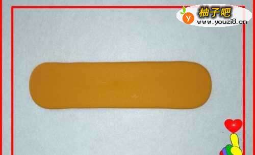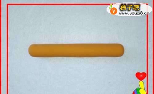 5再取桔色彩泥适量,滚搓成圆柱形。