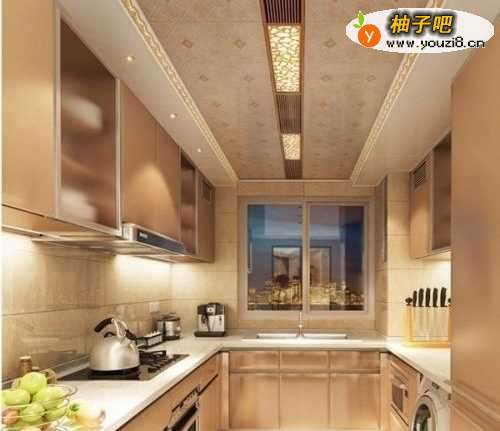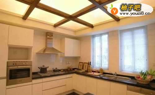 吊顶:最好吊全顶,以便于擦洗。推荐使用集成吊顶,既抗油又抗老化,因为厨房整天烟熏火燎的,装修材料老化的快,这个集成吊顶更优胜于PVC、铝塑扣板。