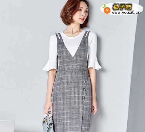 格子背带裙配什么上衣好看