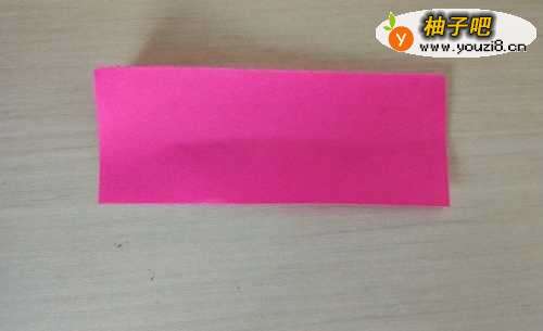 2把玫红色的纸剪成宽一点的长方形,把橘黄色的纸剪成细一点的长方形备用