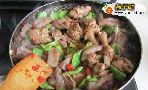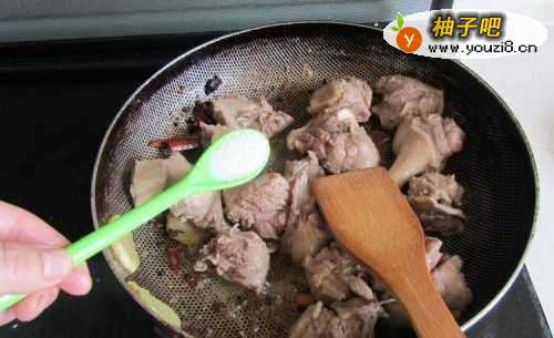 4鸭肉煸炒变色后加入少量的糖一起煸炒