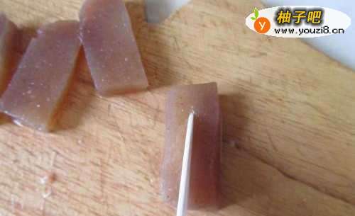 魔芋切成细长条型, 在中间用刀划个小口;将魔芋上端从中间的口穿过去,魔芋就形成了自然的花结,随后把处理好的魔芋焯水