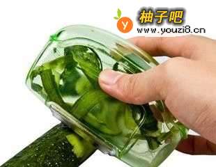 2用水果刀斜着切黄瓜,切成薄薄的小片,大约1mm左右