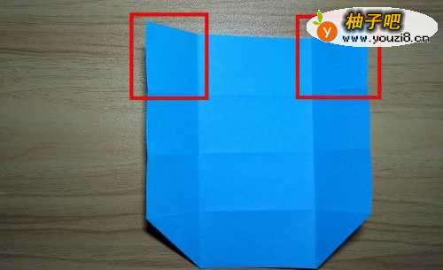 6左下角、右下角分别折到第三条折痕,成为等腰三角形。