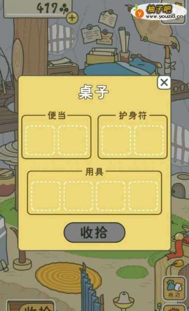 2进入到桌子,可以看到有便当、道具、护身符三项,每项是空的,说明什么都没有准备。