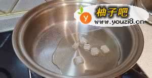 4小煎锅预热,下油和冰糖,化开冰糖。