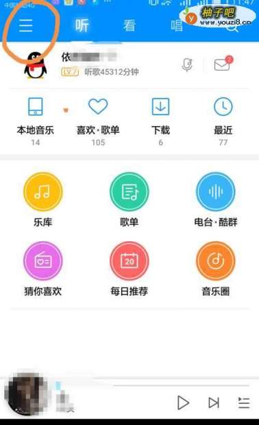 先打开酷狗音乐,在左上角如图所示的位置点击进入。