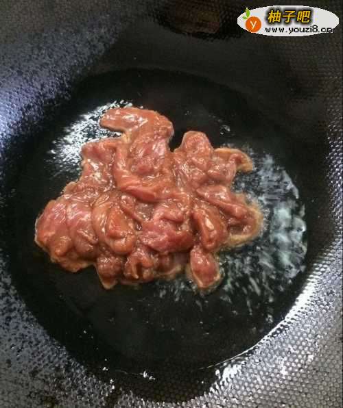 3锅里放油烧热,下肉片翻炒,变色后盛起。