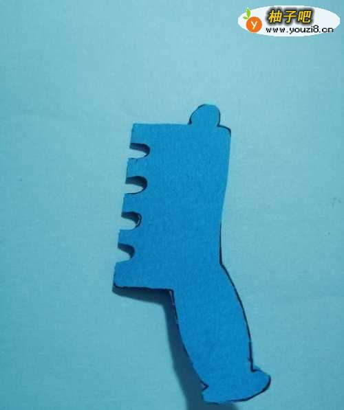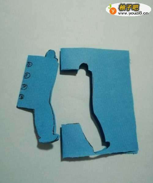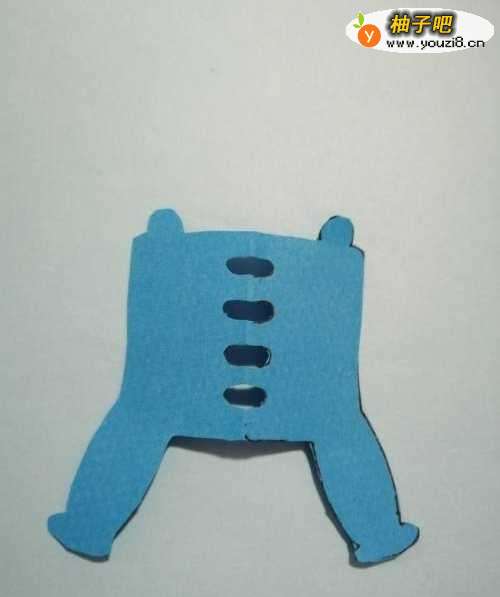 6第六步,用剪刀把画好的连体裤剪裁出来,注意纽扣的剪裁。