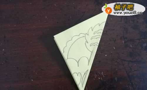 4折好后,在上面画上图案,如图。