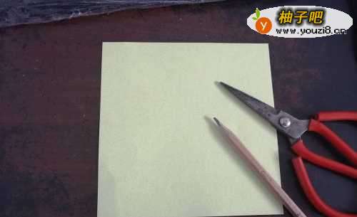 首先准备好一张正方形彩纸,笔,剪刀。