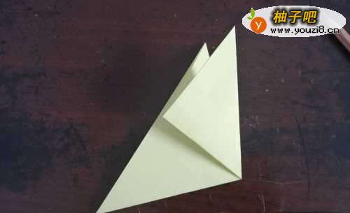 2先把彩纸的两角对折,再把左右角对折。