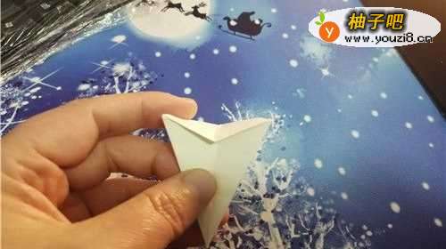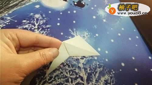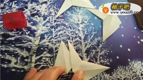 5打开一侧的彩纸,把里边的两边拿到外边来,如图一。剩下的彩纸一样操作,如图二。